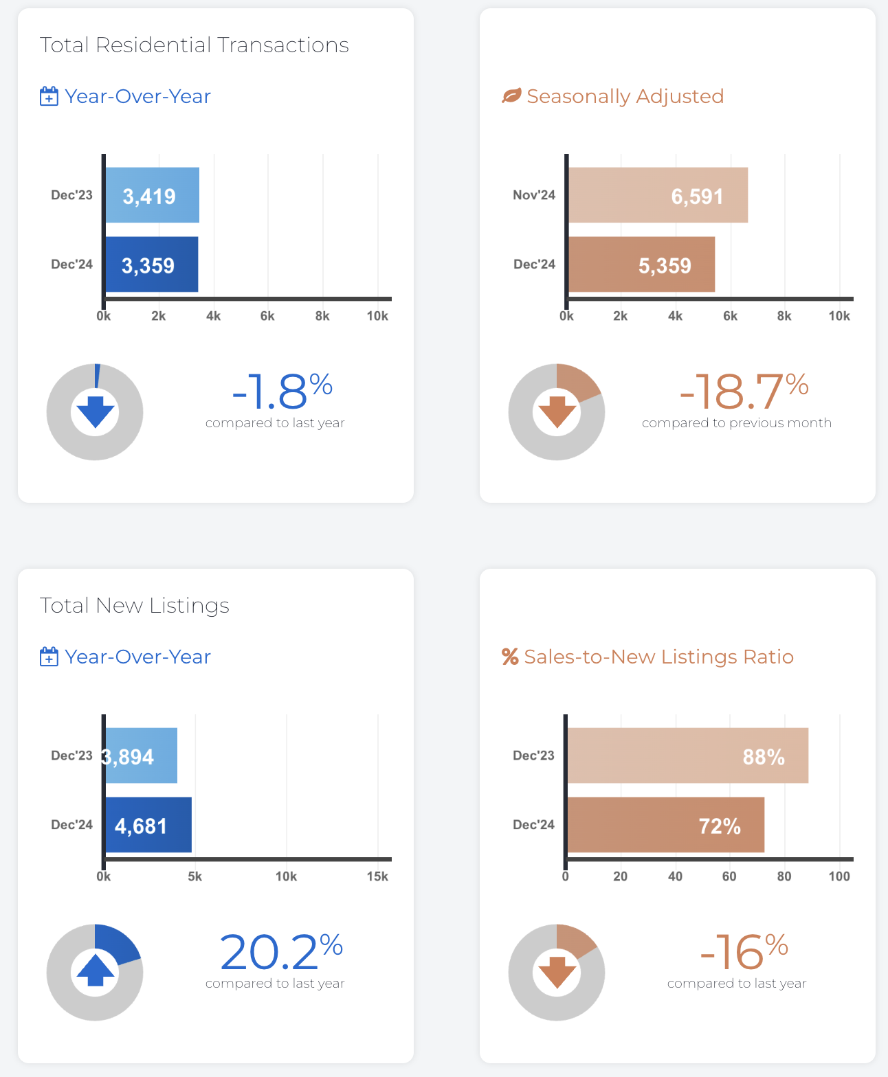 - Total Residential Transactions: Almost on par with December 2023, showing that trends are closely following seasonal patterns.