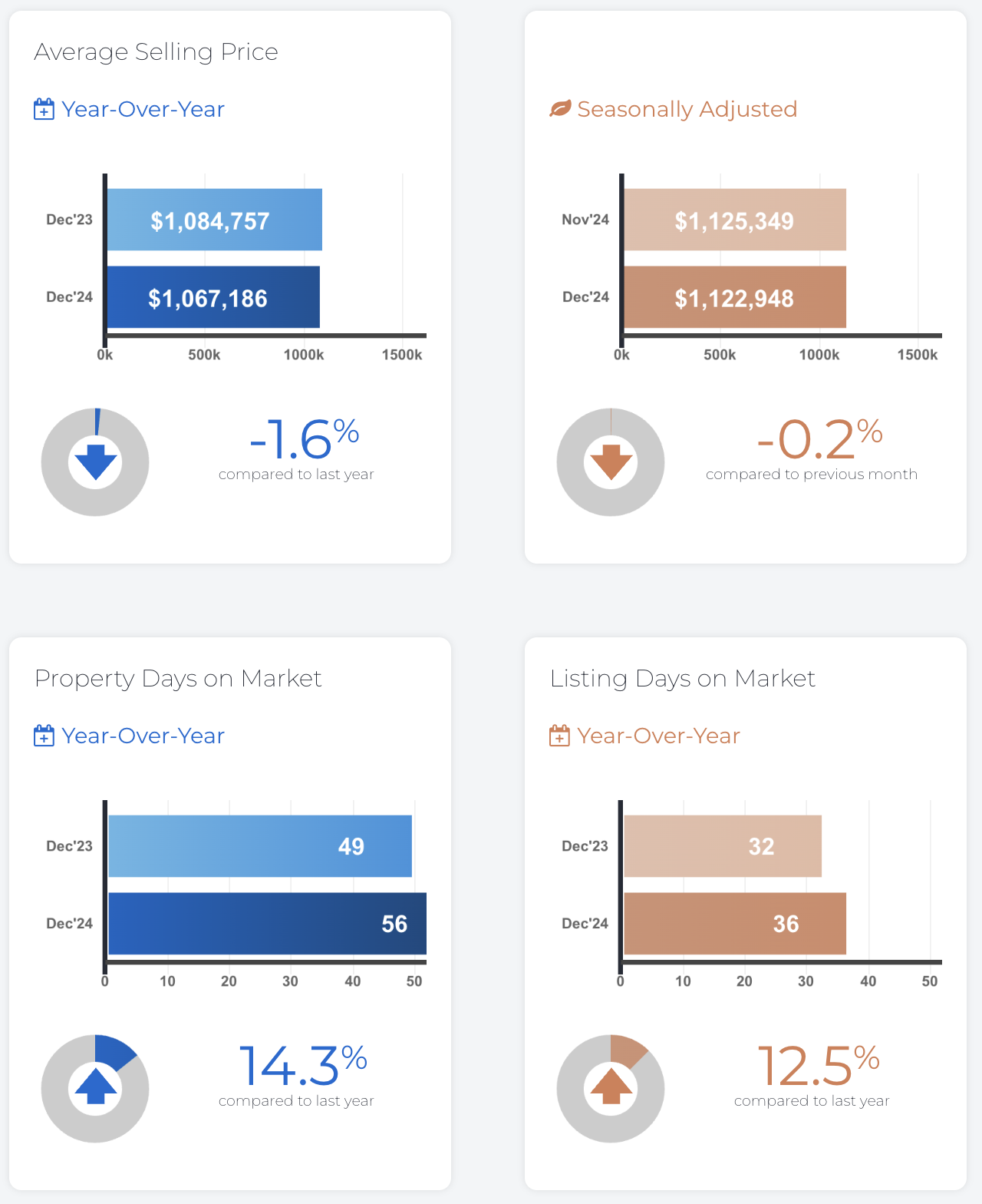 - Average Selling Price: A modest 1.6% decline means prices are very much aligned with our 2024 prediction that the market would move sideways.